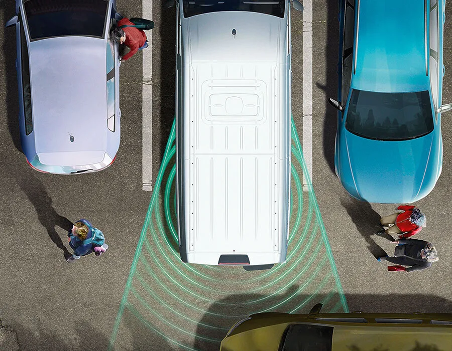De bestelbus kan worden uitgerust met een achteruitrijcamera. De beelden worden getoond op het display in de cabine. De camera helpt bij inparkeren, achteruit rijden en manoeuvreren. Door het brede beeld heb je te allen tijde een goed omgevingsoverzicht, zelfs in drukke of krappe situaties.