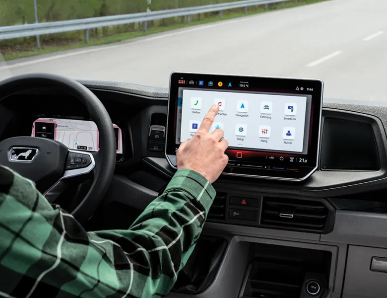 Het nieuwe dashboard maakt het werk van de chauffeur makkelijker én beter. Blikvangers zijn de nieuwe virtual cockpit en het grote(re) infotainmentsysteem met draadloze oplaadfunctie voor je smartphone en stembediening. Alle functies die je nodig hebt, zijn binnen handbereik.