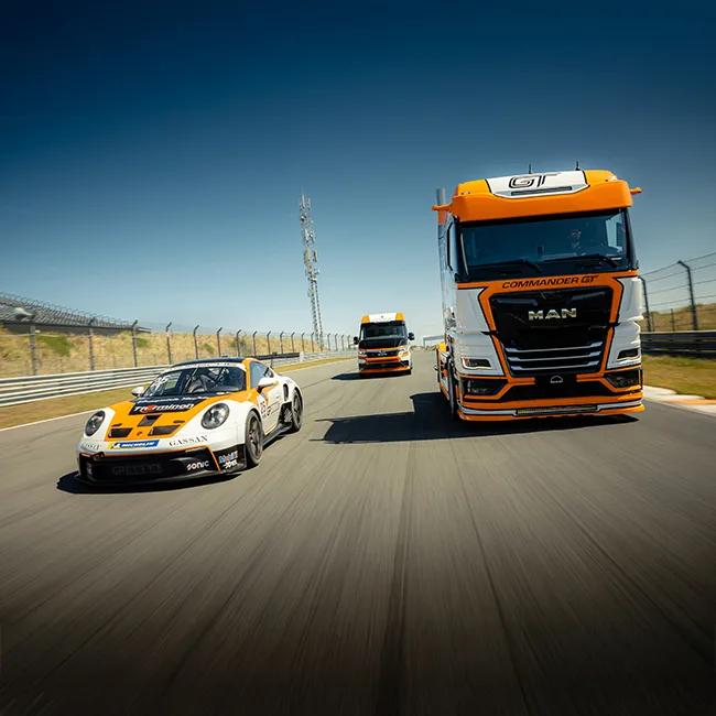 MAN Truck en Bus Nederland heeft ook dit jaar een nieuwe Commander, geïnspireerd door het race team GP Elite dat meedoet in de hoogste klasse van het Porsche cup racen: De Porsche Mobil 1 Supercup. Deze twee merken staan samen voor topkwaliteit, passie en perfectie. Deze unieke Commander brengt de snelheid en precisie van de racewereld samen met de robuustheid en comfort van MAN, en resulteert in de volgende Commander die de ultieme drive symboliseert: Verder Vooruit.