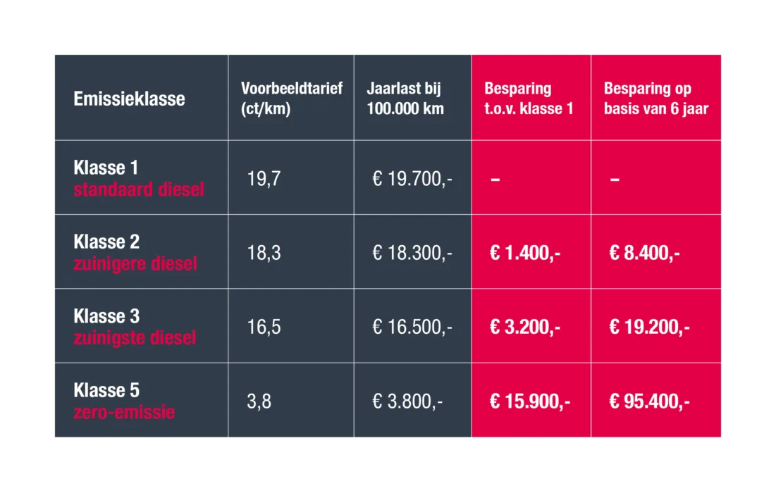 Met de komst van de vrachtwagenheffing in juli 2026 vervalt het huidige Eurovignet. In plaats daarvan ga je straks per kilometer betalen. Dit geldt op bijna alle snelwegen en op sommige provinciale en gemeentelijke wegen. Hoeveel dat is, hangt af van hoe zuinig de truck is. Dat wordt bepaald aan de hand van de VECTO-klasse. Hoe zuiniger, hoe hoger de klasse en hoe lager het tarief wat je betaald per kilometer .