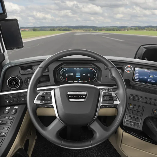 De nieuwe digitale cockpits beschikken - vooral in de busversies - over het innovatieve besturingssysteem SmartSelect, een nieuw ontworpen werkplek voor de chauffeur die voldoet aan de hoogste ergonomische normen. In het midden van de console bevindt zich het nieuwe SmartSelect bedieningspaneel, samen met een hoogwaardig infotainmentsysteem met navigatie, dat voor de chauffeur eenvoudig bereikbaar en intuïtief te bedienen is.